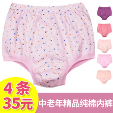 水晶豆女纯棉内裤中老年人全棉三角裤头老人高腰大码宽松妈妈短裤