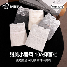 4条装日系全棉100内裤女中腰无痕纯棉质面料大码少女蕾丝三角短裤