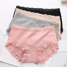 高腰内裤女纯棉 包臀纯色提臀日系性感柔软弹力蕾丝全棉质面料