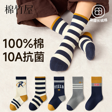100%棉a类儿童袜子男童春秋纯棉无骨抗起球10A抗菌防臭男孩中筒袜