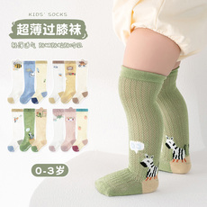 婴儿袜子春夏薄款纯棉a类中筒袜宝宝0到3月网眼防蚊新生幼儿长袜