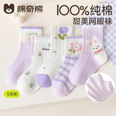 【100%棉】女童袜子儿童夏薄款纯棉袜女孩春夏全棉a类宝宝网眼袜