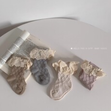 a类100%棉儿童袜子女童春秋款纯棉中筒袜冬季女孩韩系花边公主袜
