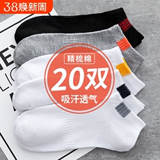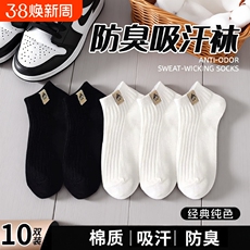 【7A抗菌】袜子男短袜夏季纯棉薄款男生防臭透气吸汗白色男士船袜
