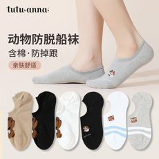 tutuanna春秋船袜女棉质可爱纯色动物刺绣隐形浅口柔软不掉跟船袜