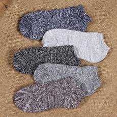 无印拾梦100%纯棉船袜子男士秋冬厚款防臭隐形不掉跟男短袜