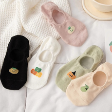 刺绣短袜女2025新款秋冬纯棉可爱小熊不掉跟船袜隐形袜子无骨夏季