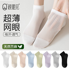 袜子女夏季薄款2025新款爆款网眼船袜防滑不掉跟苎麻防臭透气短袜