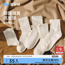 尼多熊2025儿童白色袜子a类春秋棉袜女中大童抗菌袜秋冬季防臭袜