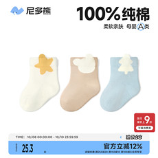 尼多熊2025新生儿袜子秋冬婴儿纯棉袜a类0到3月宝宝袜无骨不勒腿