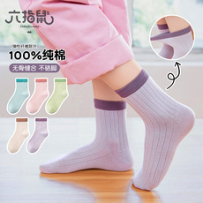 100%纯棉a类无骨袜六指鼠女童儿童女宝宝春秋季男童全棉中筒袜子