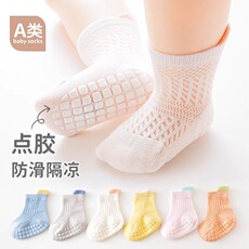 宝宝袜子夏季薄款网眼点胶防滑地板袜短婴幼儿A类1-3-5岁室内学步