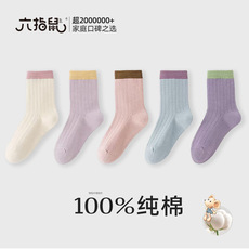 女童袜子100%六指鼠纯棉无骨抗起球春秋季A类透气吸汗学生中筒袜