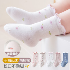 100%棉a类夏季女童袜子网眼花边10A抗菌防臭无骨抗起球女孩公主袜