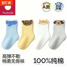 优徽乐卡通可爱动物婴儿袜10A抗菌A类高弹不勒棉柔无骨宝宝中筒袜