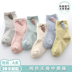 春秋季宝宝中筒袜婴儿袜子婴幼儿棉袜a类无骨初生新生儿棉袜保暖