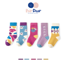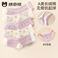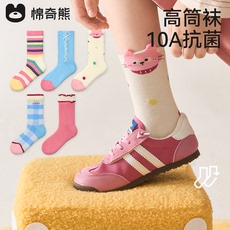 女宝袜子秋冬女童A类精梳棉中筒袜儿童10A抗菌卡通无骨长筒袜