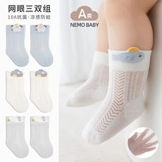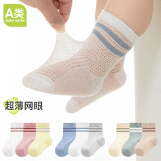 【100%棉】婴儿袜子儿童a类春夏薄款透气网眼袜男宝宝中筒纯棉袜