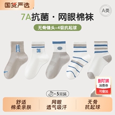 【100%棉】10A抗菌无骨儿童袜子A类夏季薄款网眼透气男女童中筒袜