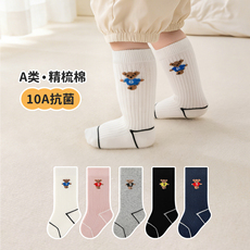 袜子男童春秋款棉袜宝宝袜子7A抗菌防臭秋冬无骨A类抗起球中筒袜