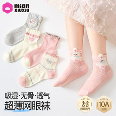 儿童袜子女童春夏款纯棉A类女孩宝宝薄袜抗菌网眼袜无骨中筒袜