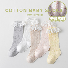 宝宝袜子春夏季薄款纯棉一岁女宝新生婴儿网眼透气a类不勒中长筒