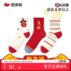 尼多熊儿童红袜子本命年袜子秋冬a类棉袜过年红色袜新年袜男女童