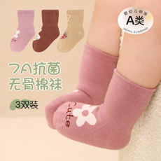 婴儿袜子宝宝秋冬季韩版新生儿比纯棉A类中筒袜婴幼儿地板袜无骨