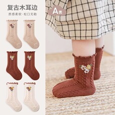 婴儿袜子宝宝春秋款中筒袜舞蹈袜新生儿儿童花边公主袜比纯棉A类