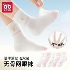 女童袜子夏薄款纯棉儿童a类中筒童袜女孩宝宝无骨超薄透气网眼袜
