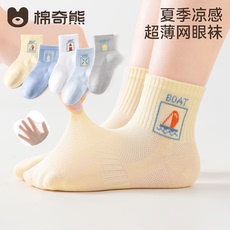 【100%棉】男童袜子纯棉A类透气薄款网眼袜夏季儿童无骨中筒棉袜