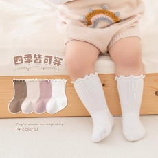 春秋a类婴儿袜子新生儿棉袜宝宝中筒袜婴幼儿无骨袜子松口花边袜