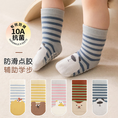 儿童地板袜纯棉a类无骨宝宝学步袜春秋室内防滑0-3月幼儿中筒袜