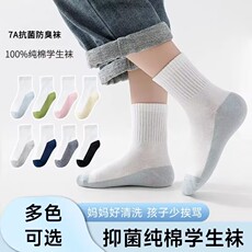 A类100%纯棉儿童袜子抑菌抗起球无骨袜学生专用防臭运动袜小白袜