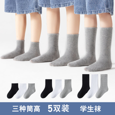 儿童长筒袜纯棉袜子春秋灰色白色黑色男童中筒袜女童a类A防臭吸汗