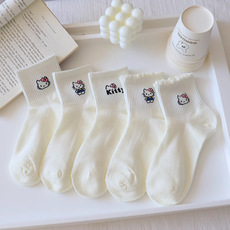 2026新网眼儿童袜子女童春夏季helloKitty纯棉a类薄款小孩宝白色