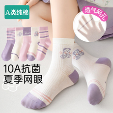 纯棉无骨抗起球7A抗菌A类男女儿童袜子夏秋超薄款网眼透气防臭袜