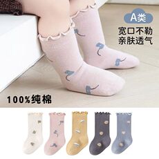 五朵棉宝宝袜子儿童长袜春秋款A类无骨婴幼儿棉袜高弹袜口不勒脚