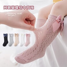 女童中筒袜春秋薄款纯棉蝴蝶结无骨公主袜宝宝袜子A类纯色婴儿袜