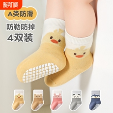 婴儿童地板袜一岁宝宝防滑隔凉纯棉a类女童男孩室内学步袜子中筒