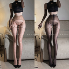 欲见*蕾丝包臀裙一体袜3D极光吊带黑丝袜红色马油亮光禁欲长筒袜