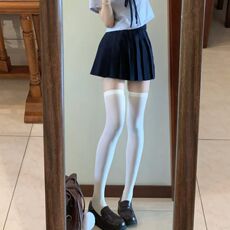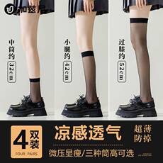 白色超透小腿袜JK学院风夏季长筒薄黑丝ins潮超薄高筒萝莉甜辣袜
