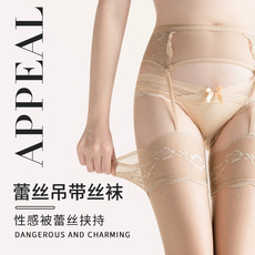 纯欲性感蕾丝花边吊带袜一体肉色丝袜情调开裆黑丝过膝长筒袜薄款