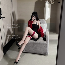 黑丝袜性感蕾丝一体吊带丝袜女情调黑丝长筒半截过膝袜红边吊带袜