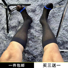 正装商务男士丝袜条纹薄款透气舒适日系防臭性感黑色绅士长筒袜