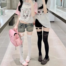 LET ME SEE 自制可爱印花袜子女长筒过膝袜jk大腿袜日系学生丝袜