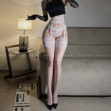 sk「繁梦引」丝袜女薄款防勾丝白色性感吊带袜情调蕾丝一体长筒袜