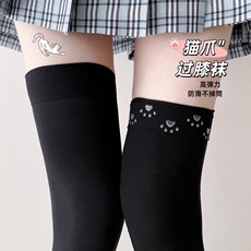 微压黑色天鹅绒过膝袜女防滑高筒白丝袜春秋jk显瘦长筒萝莉大腿袜