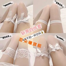 lolita蕾丝花边高筒蝴蝶结大腿袜丝袜天鹅绒白色过膝长筒袜女廋腿