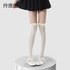 lolita白色丝袜过膝袜夏薄款花边蝴蝶结蕾丝长筒袜子女压力jk小腿